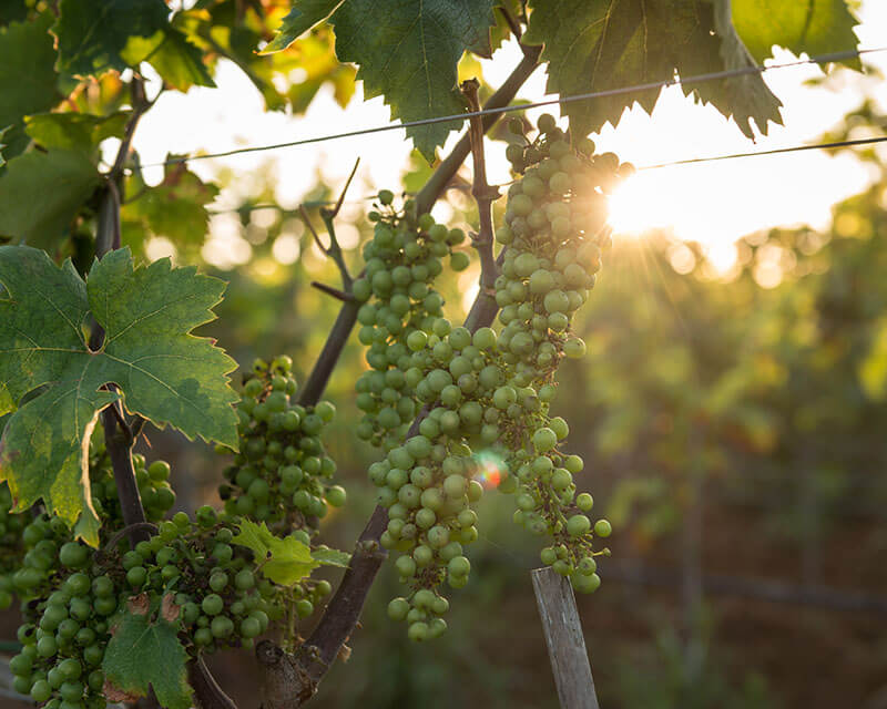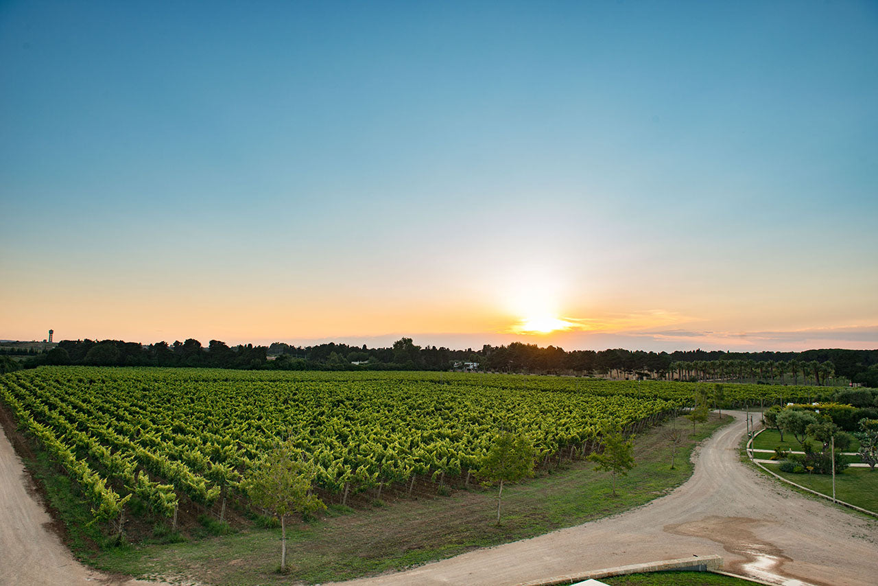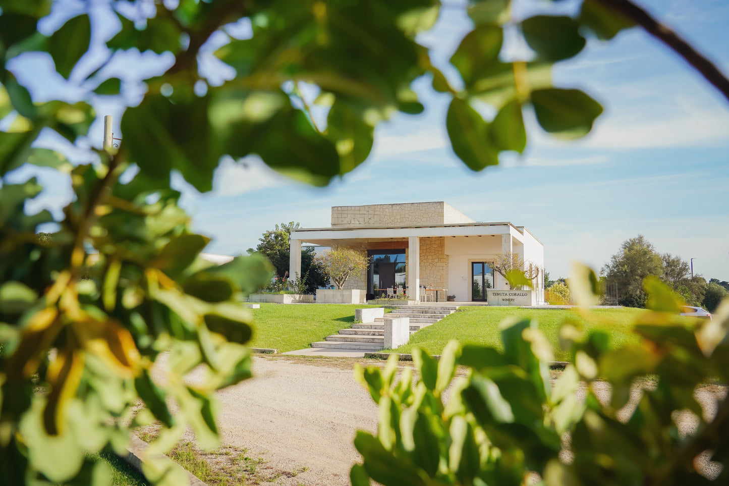 Soon, the project on paper becomes a reality, and a vineyard of about 9 hectares is planted, cultivated organically, and surrounding a refined agriturismo. It is separated from the sea by only a thin line of Mediterranean scrub, a natural barrier that protects it from the cold mistral winds blowing from the Strait of Otranto. These very natural elements—the sea breeze and rich vegetation—give the grapes and wines unique and recognizable aromas and fragrances.